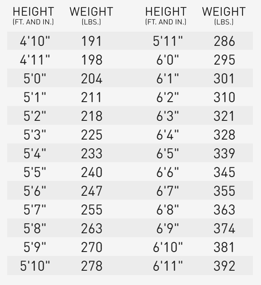 You must meet height and weight guidelines.